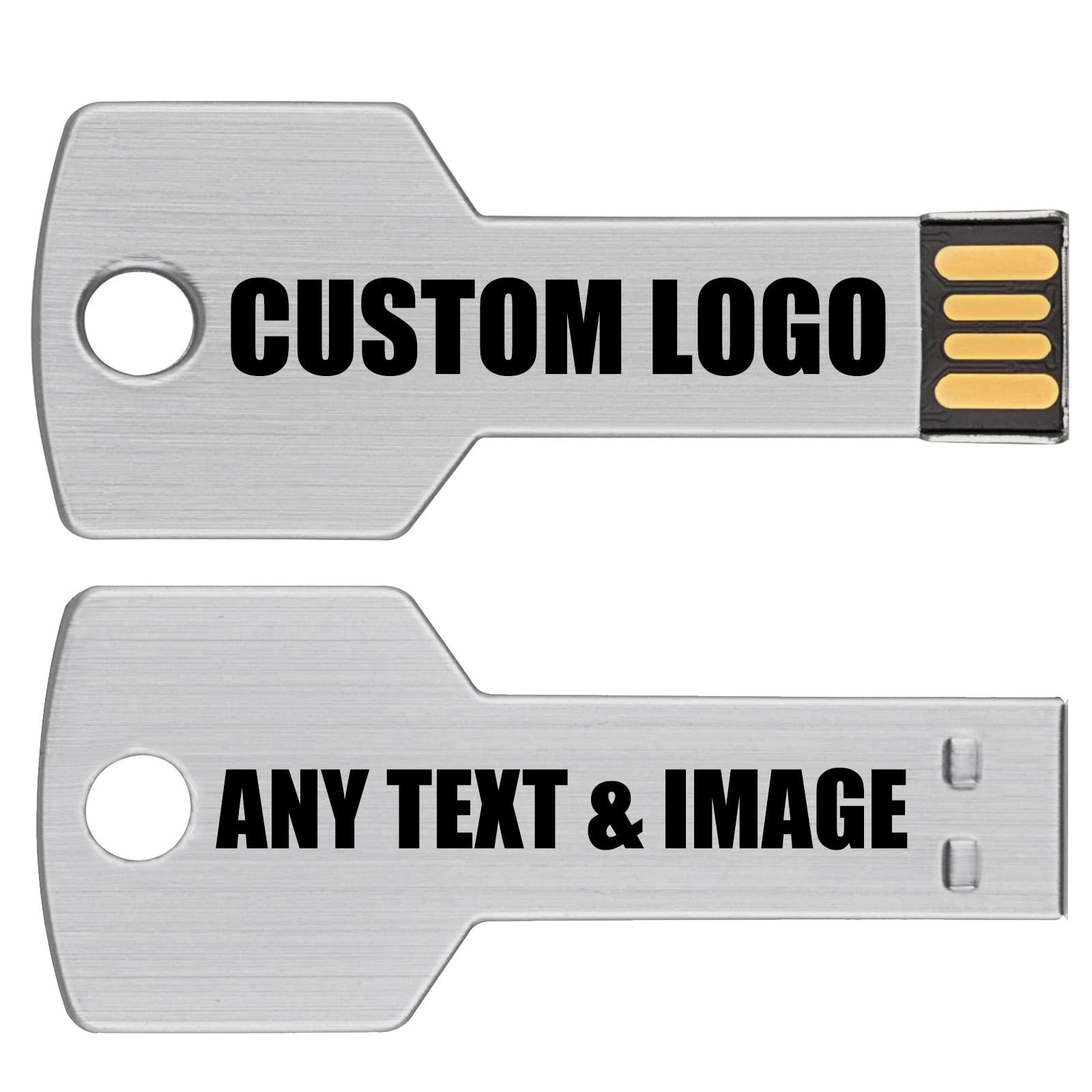 - [Custom Logo Bulk Personalized USB Flash Drives]key shape USB 2.0 flash drive,free double-sided imprinting and laser engraving for any logo.Customization Options:Laser Engraving, Color Imprinting,UV imprinting. We provide free mockup and template design(contact us),also support data preload and data lock.