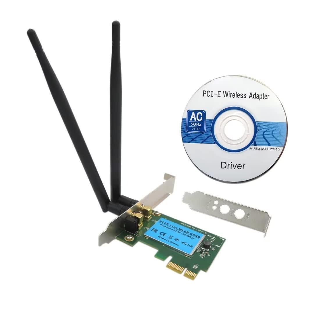 - Package includes: 1 x 1200Mbps PCI-E Wireless WiFi Card 2.4G/5G Dual Band Network Adapter For Desktop;1 x Full Height PCI-E Bracket; 1 x Half Height PCI-E Bracket;1 x Antennas;1 x CD Driver